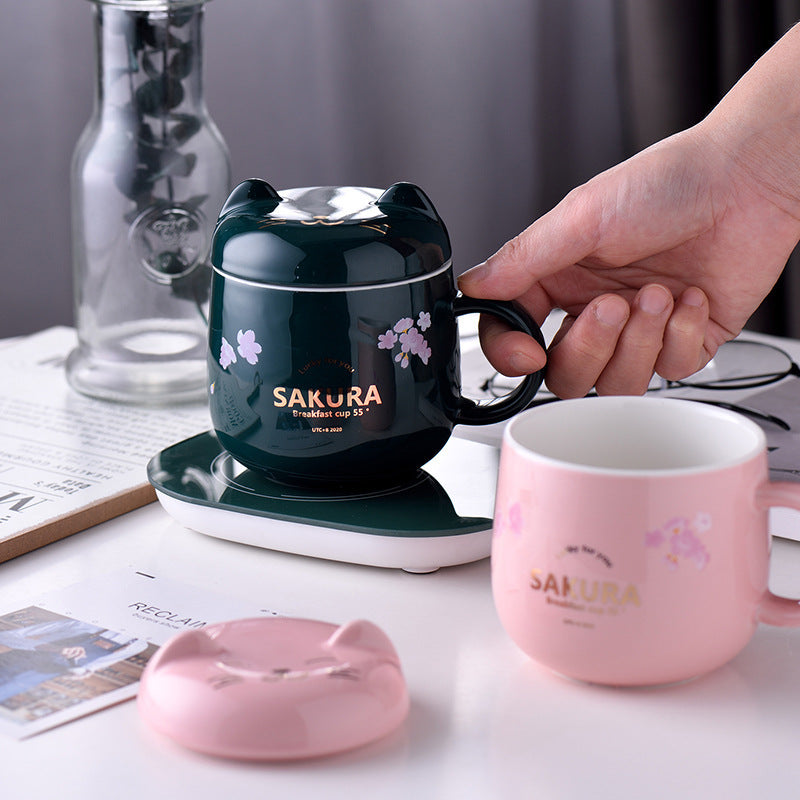 Pink suit: pink cat + warm coaster,