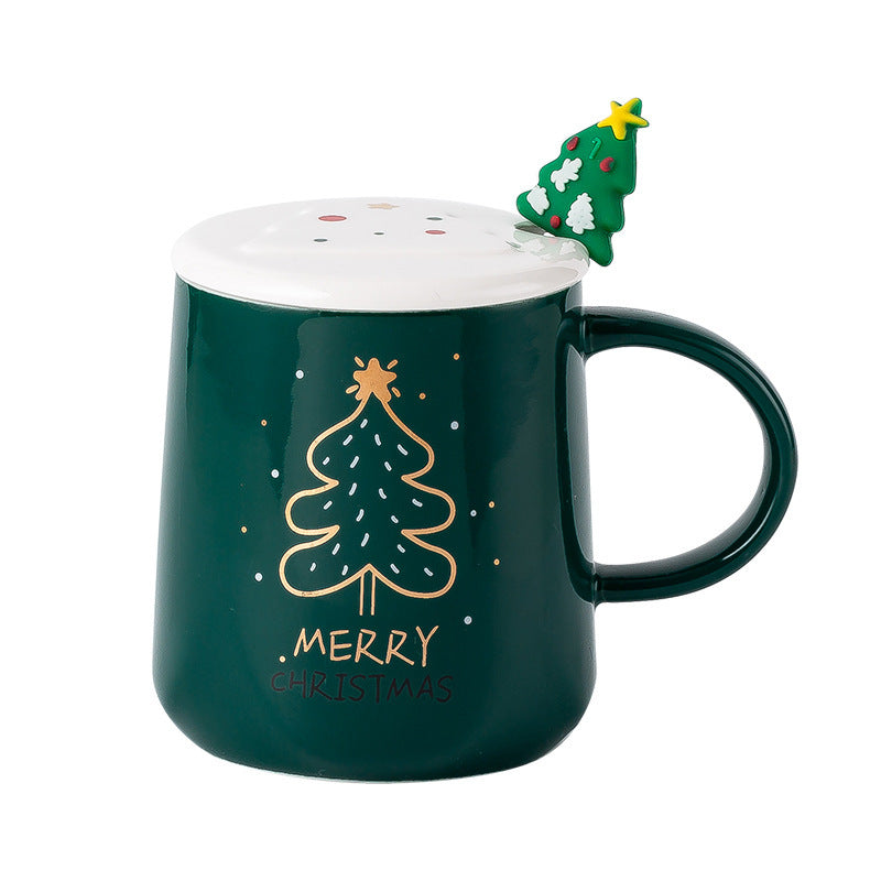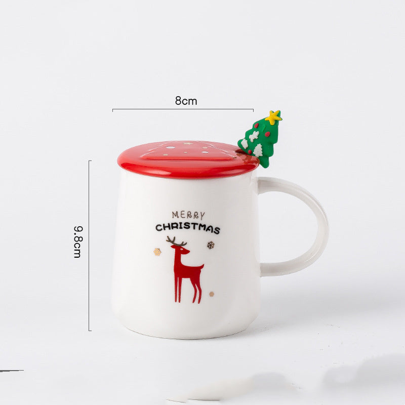 Color: A white snowman spoon with lid, B red Santa spoon with lid, C white sika deer spoon with lid, D black Christmas tree spoon with lid