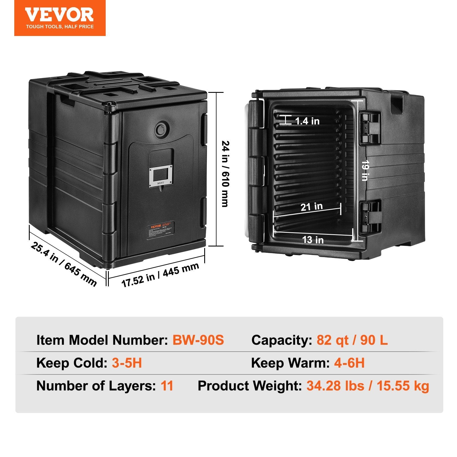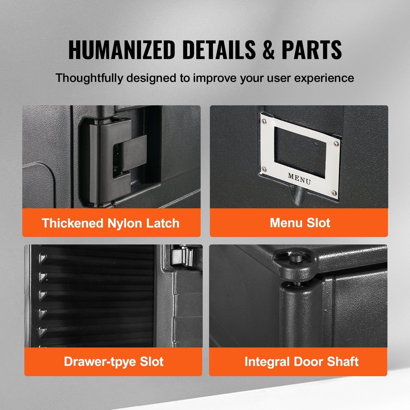 Insulated Food Pan Carrier, 82 Qt Hot Box For Catering, LLDPE Food Box Carrier W Double Buckles, Front Loading Food Warmer W Handles, Stackable End Loader For Restaurant, Canteen, Etc. Black