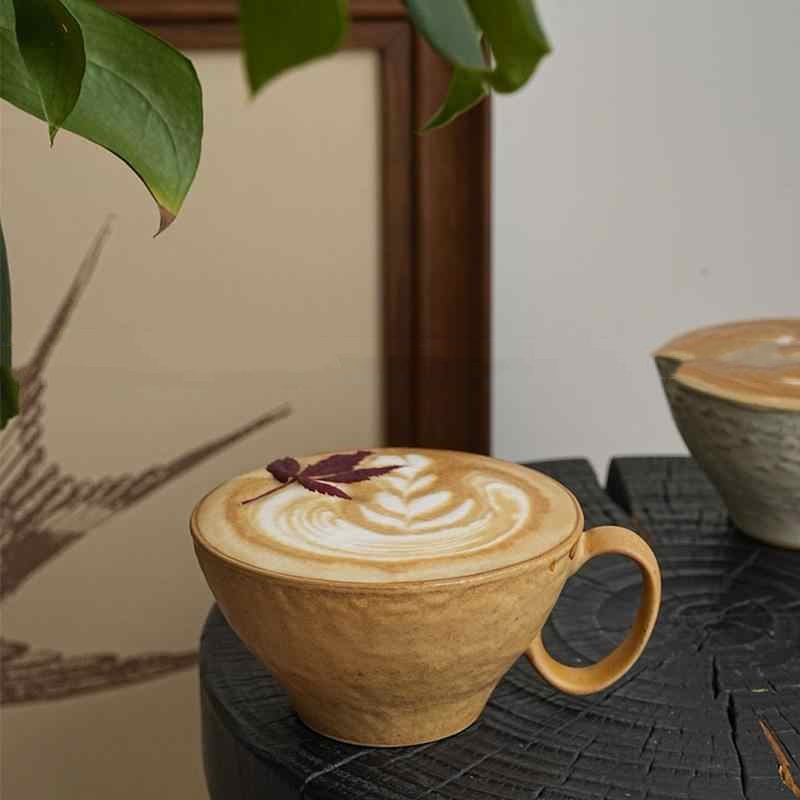 Color classification: large diameter handmade cup/caramel, large diameter handmade cup/coral pink, large diameter handmade cup/Kiln baked gray green