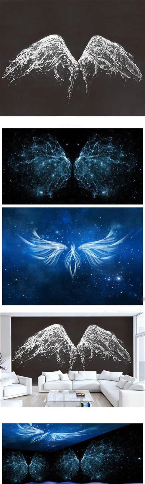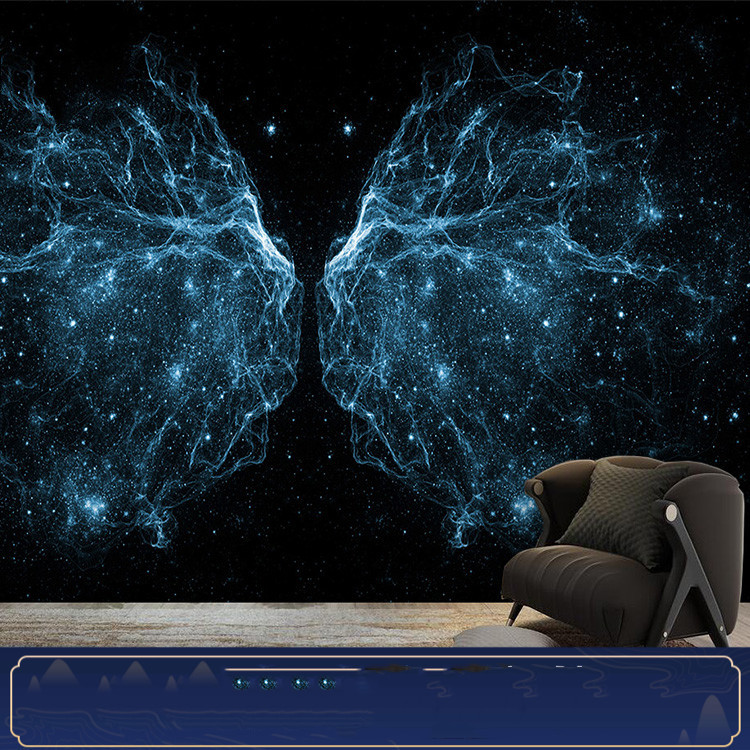 Milk Tea Shop 3D Three-Dimensional Starry Sky Angel Wings Wallpaper Mural Restaurant Internet Cafe Bar Ktv Background Wallpaper Dream