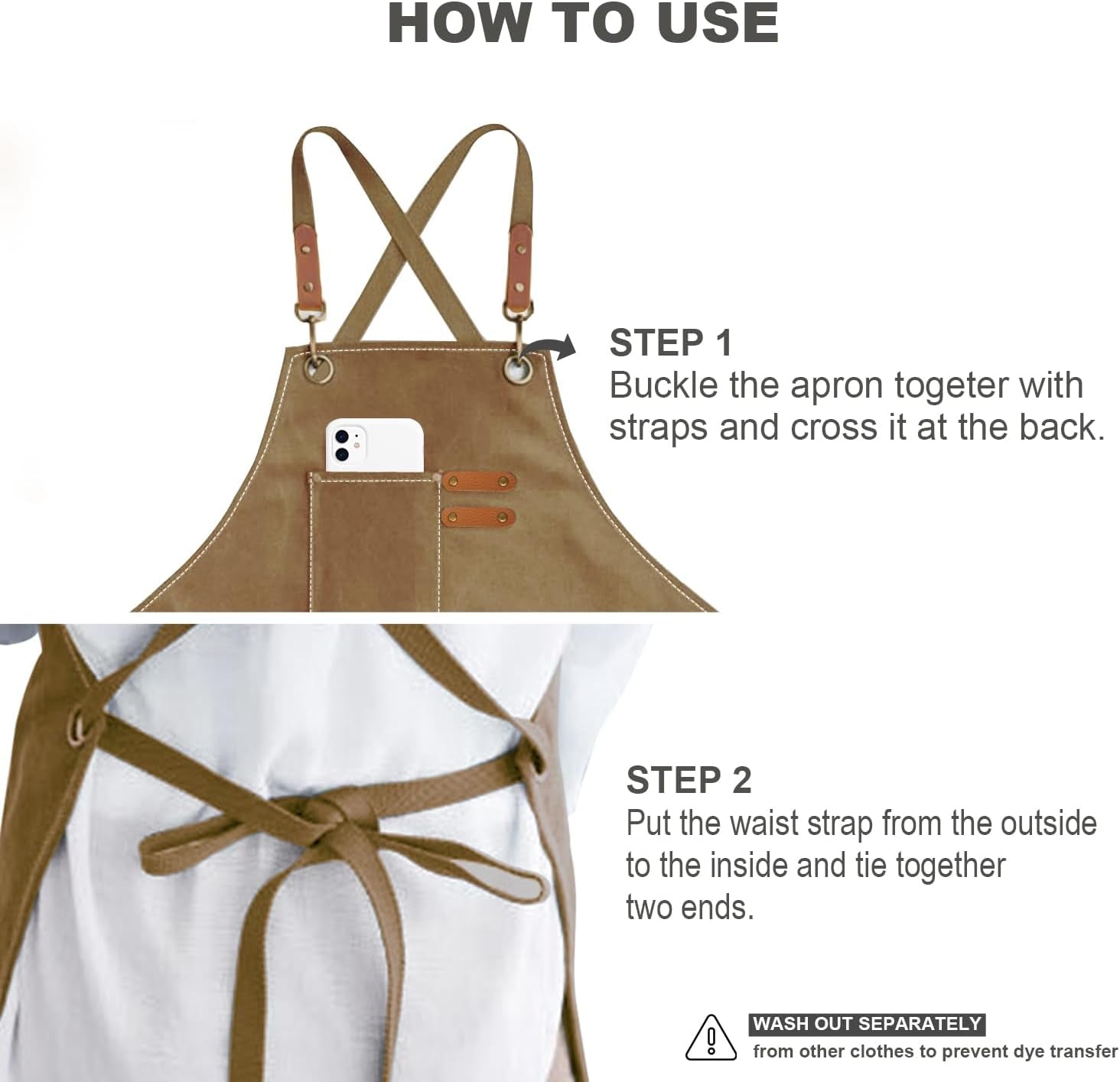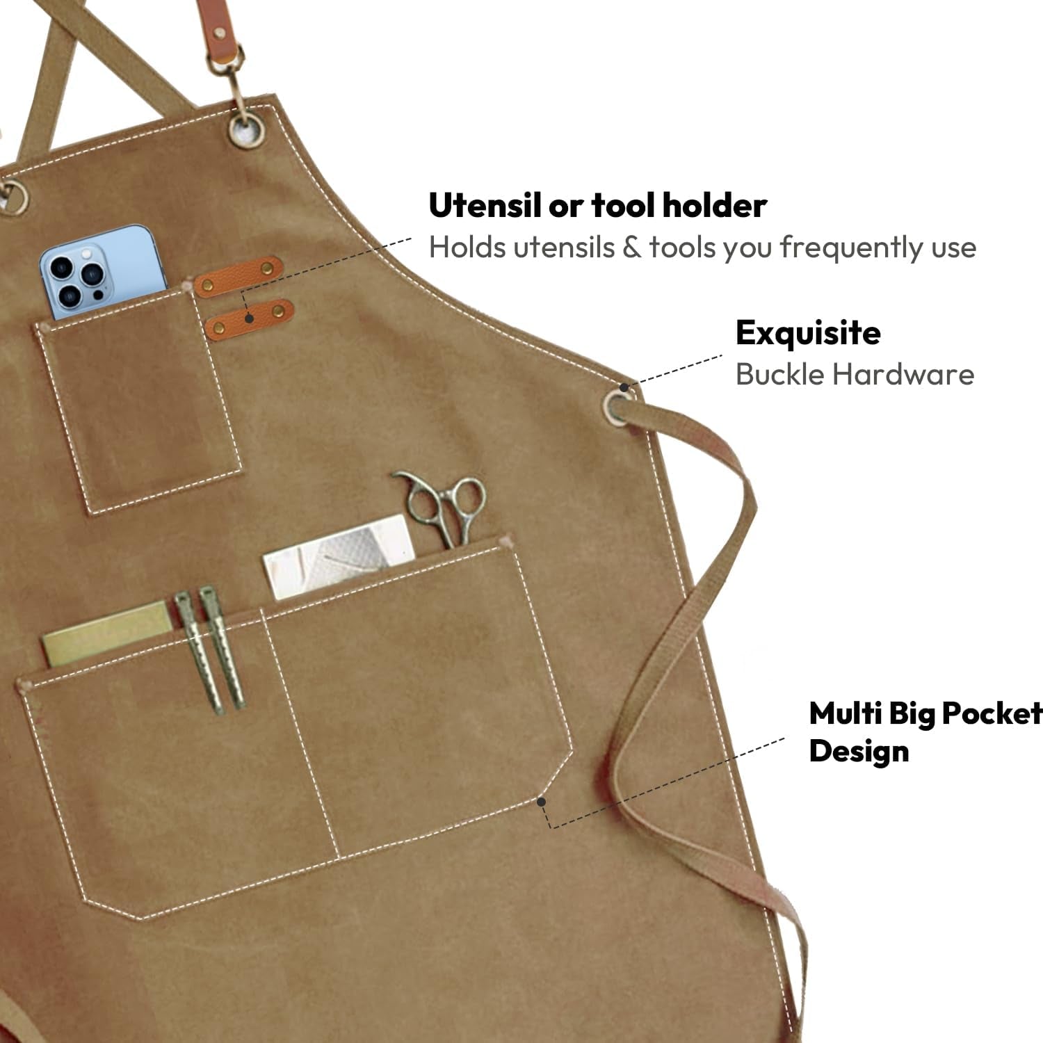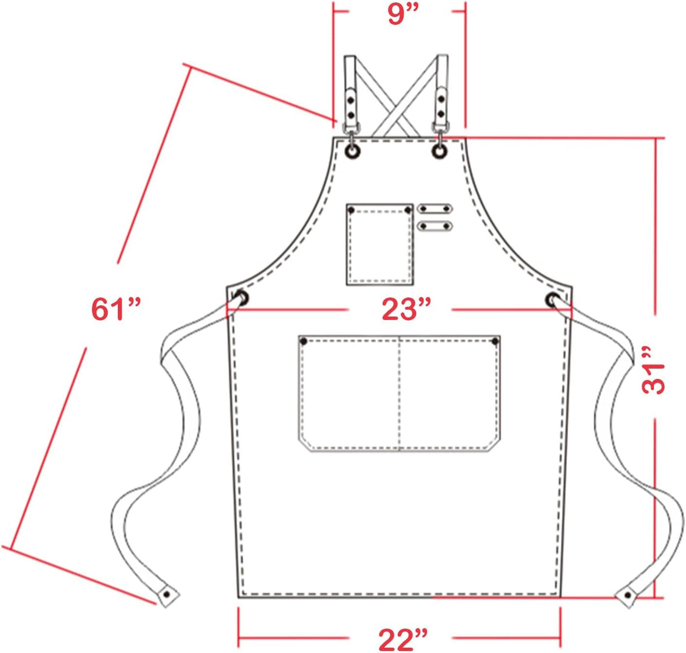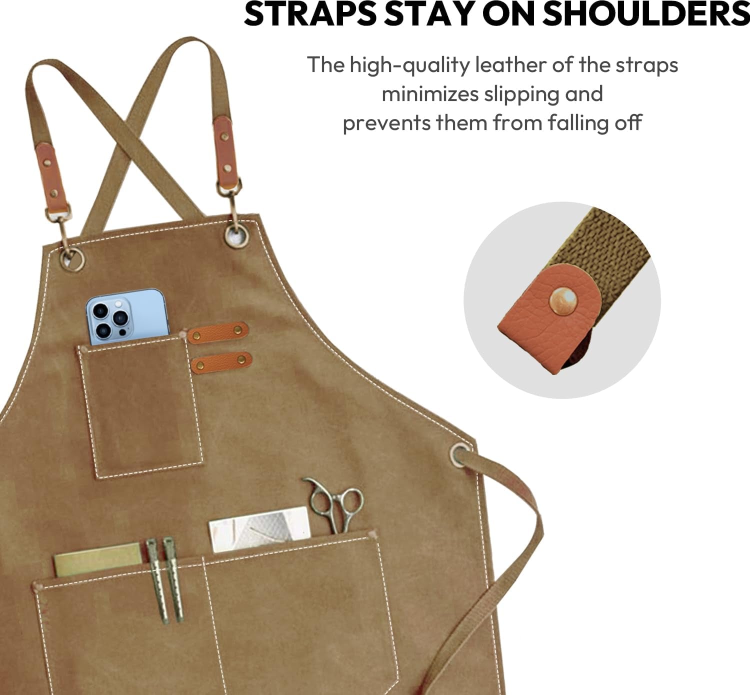The high-quality leather straps keep weight off your neck, minimizes slipping, and effectively keeps the apron in place.