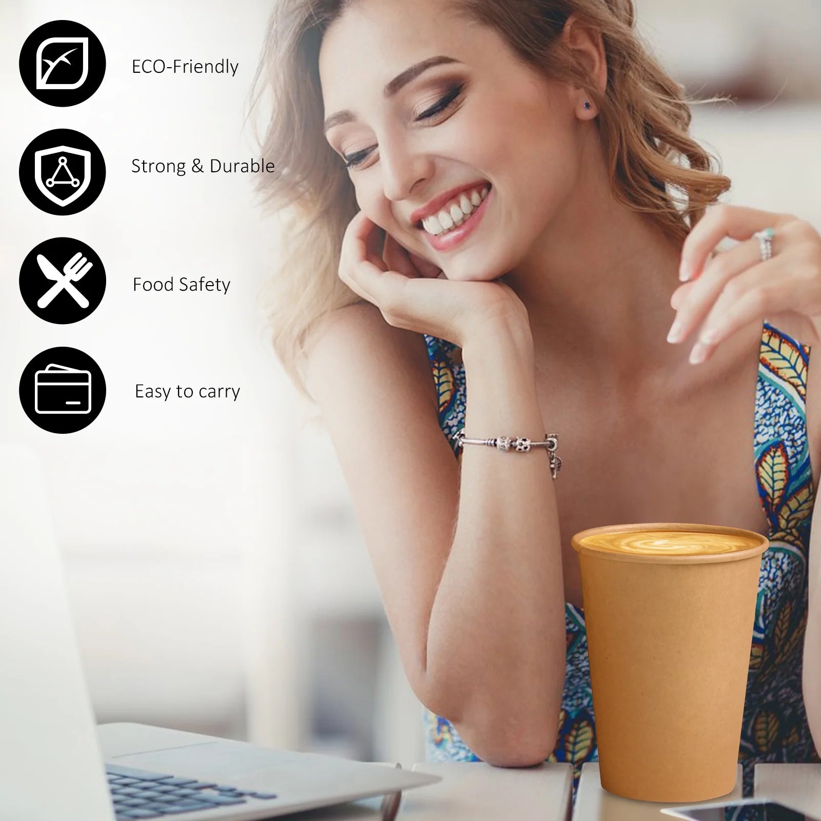 • 【Amicable with Environment】Our cups are made of food-grade materials, unbleached, these to go coffee cups disposable are made with recyclable paper.