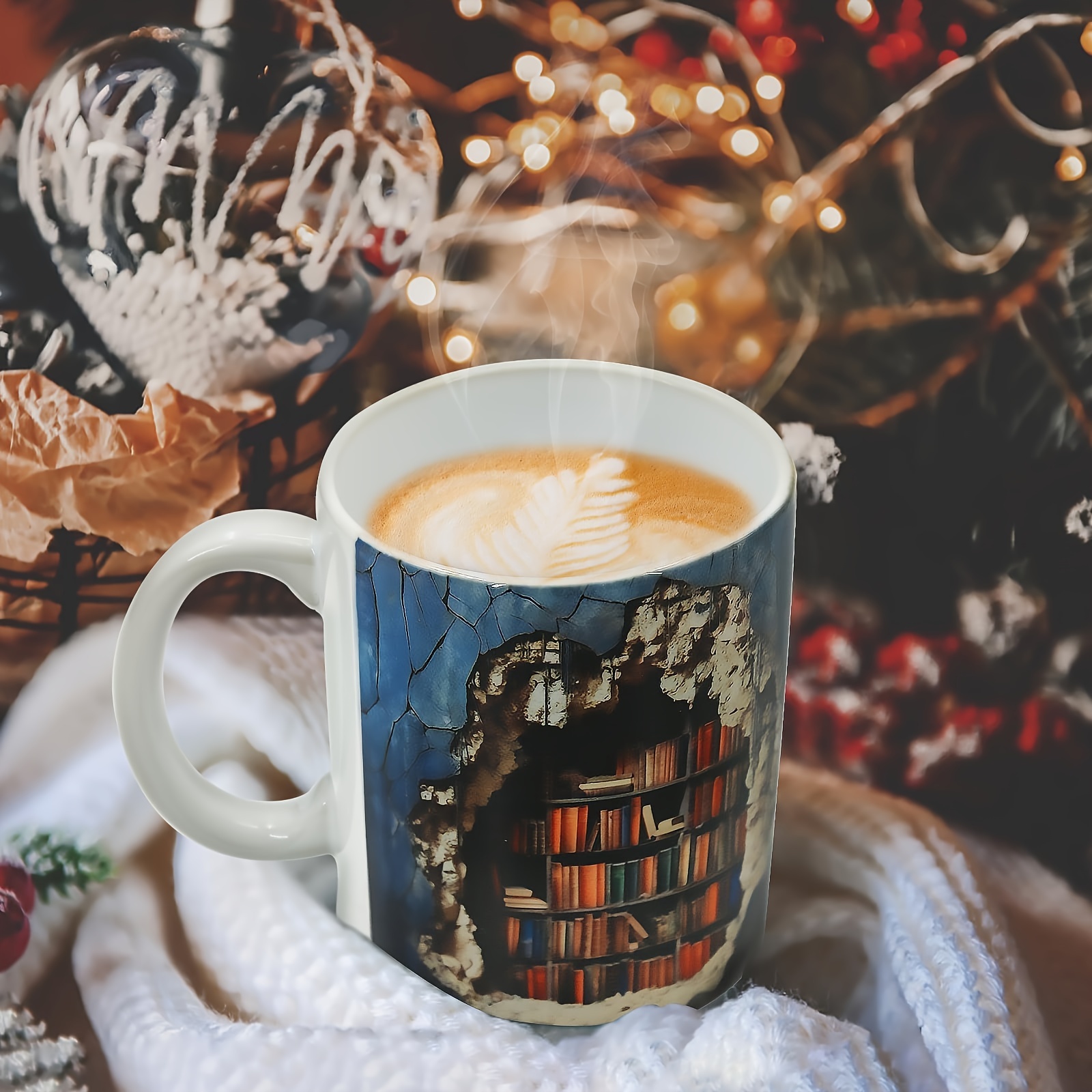 11oz 3D Immersive Library Bookshelf Mug - Unique Ceramic Coffee Cup with Stylish Design, Durable, Perfect for Coffee & Tea, Ideal Gift for Book Lovers and Bibliophiles, White, 350ml Capacity