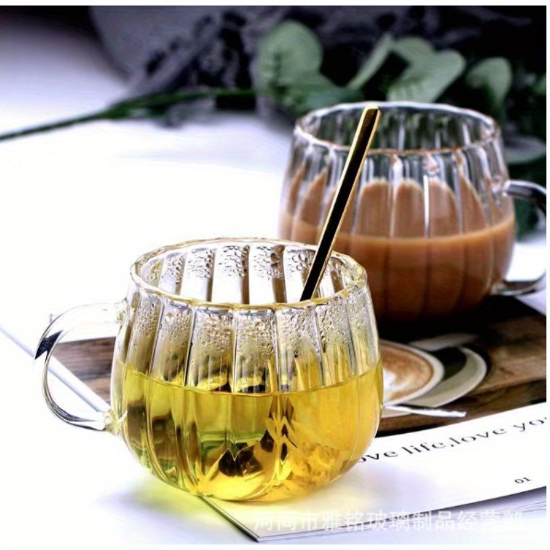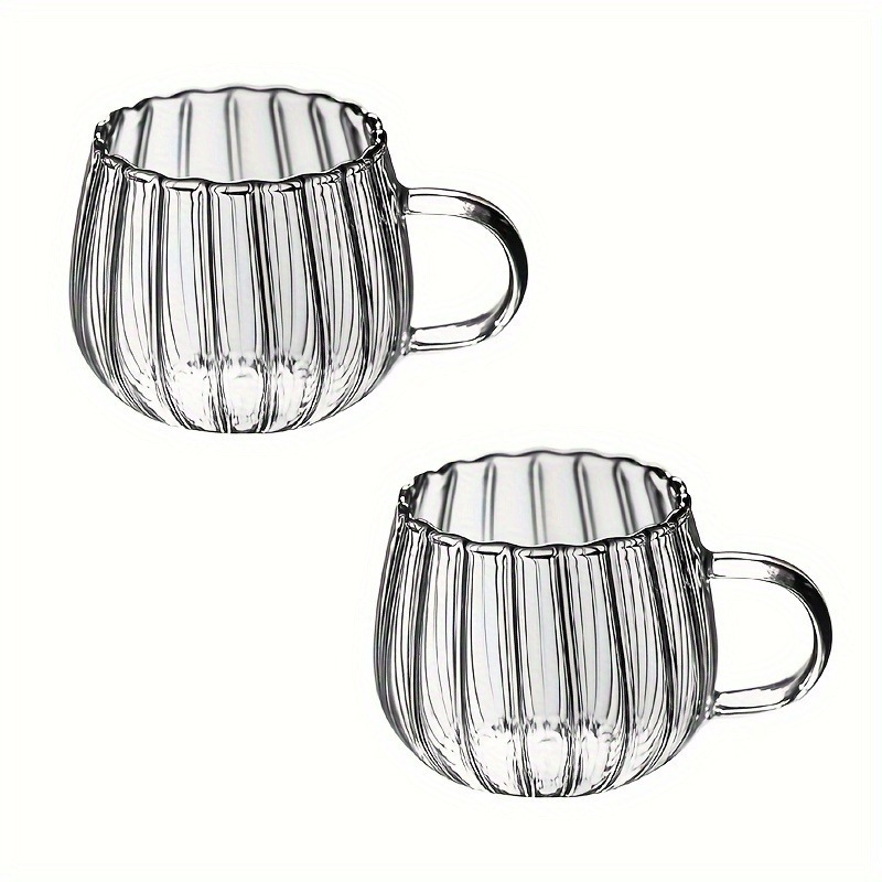 2PCS Glass Coffee Mugs with Handle, Heat-Resistant Pumpkin Pattern Clear Glass Cups for Tea, Milk, Office, Home Use - 13.53oz