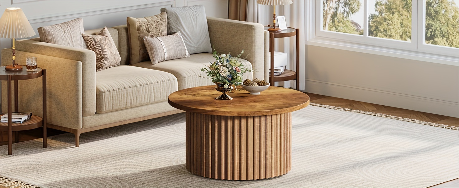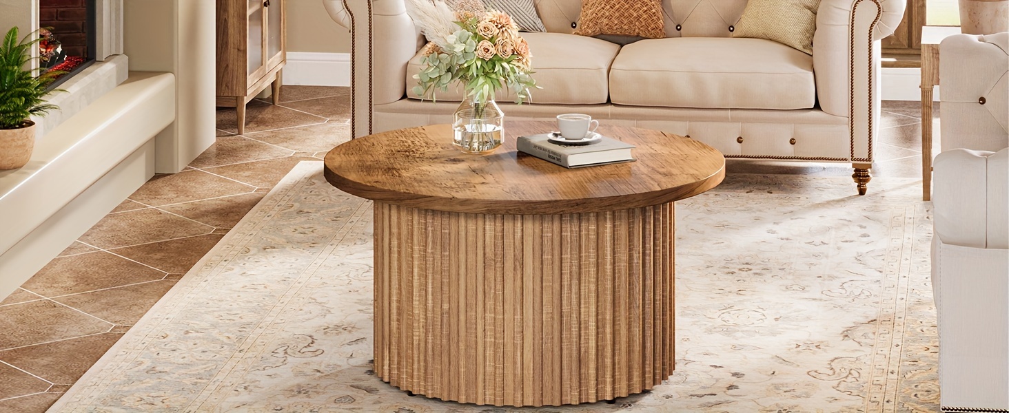 Stable & Sturdy: This Moden Round Coffee Table Is Made Of High-quality Thickened Engineered Wood And A Metal Base To Ensure Long-term Use. This Lovely Farmhouse Coffee Table Will Add Graceful Style To Your Home For Years To Come.