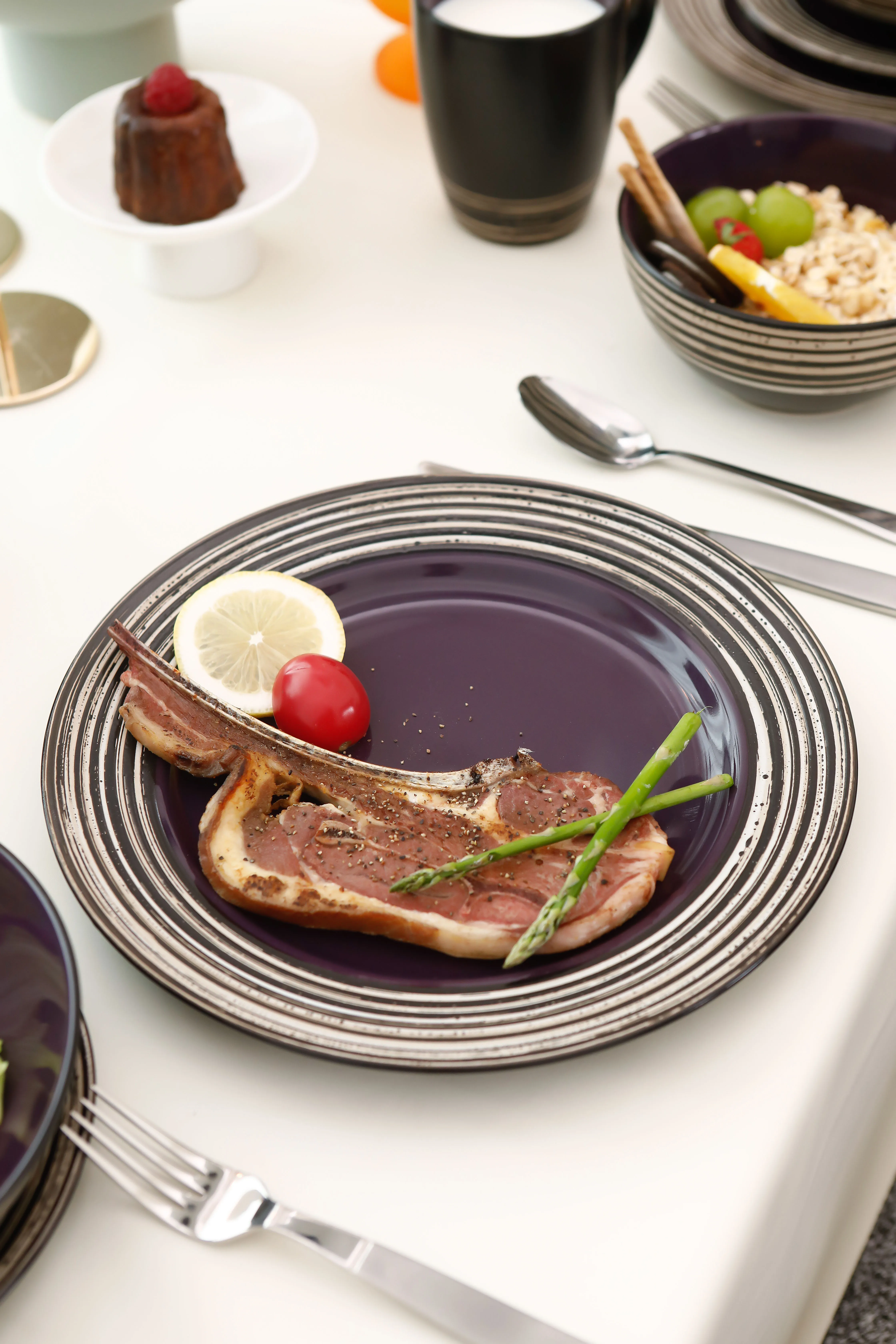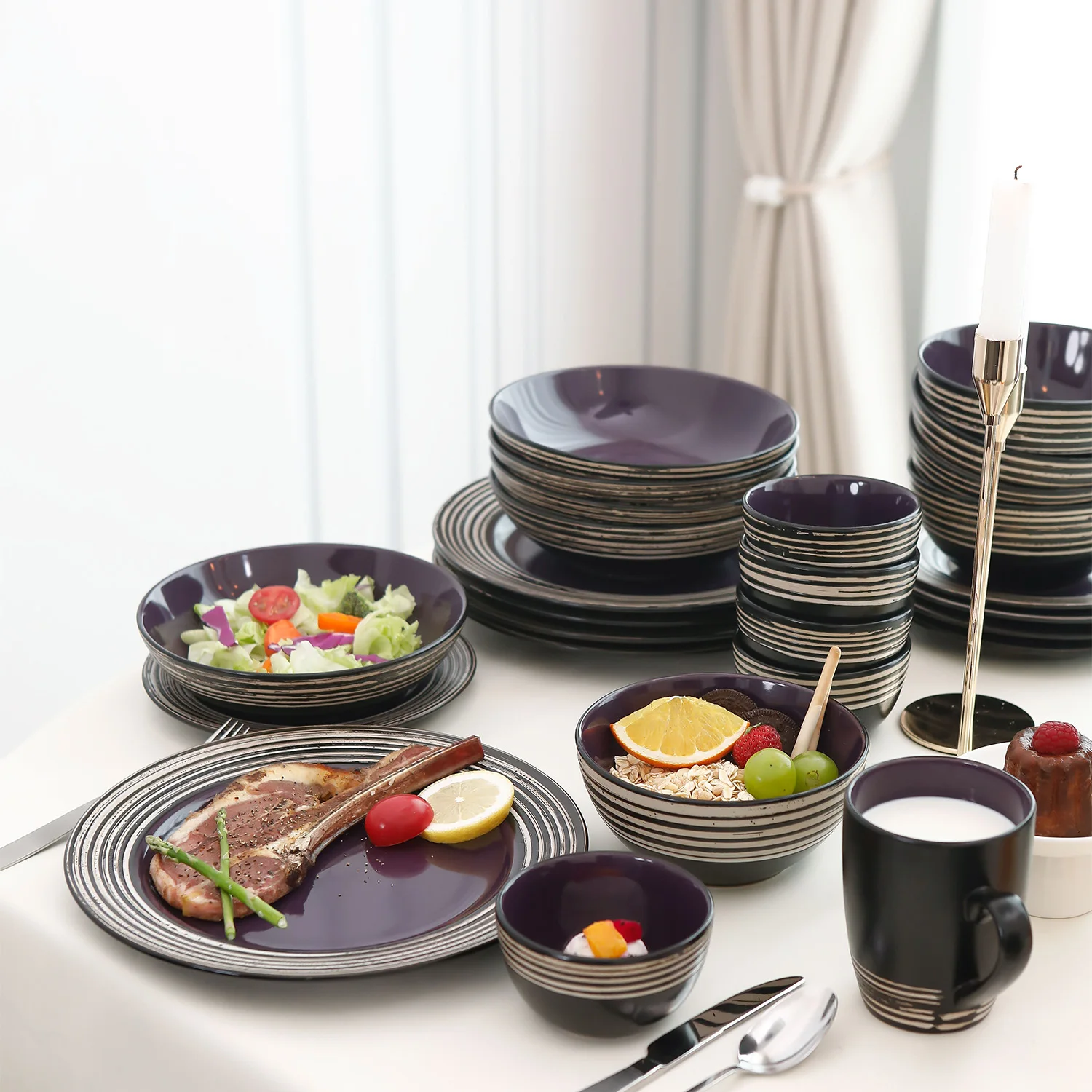 48pc Lavender Purple Stoneware Ceramic Dinner Set Vintage Coffee Mug With Salad Cereal Bowl High-end Dinnerware Sets 8 People