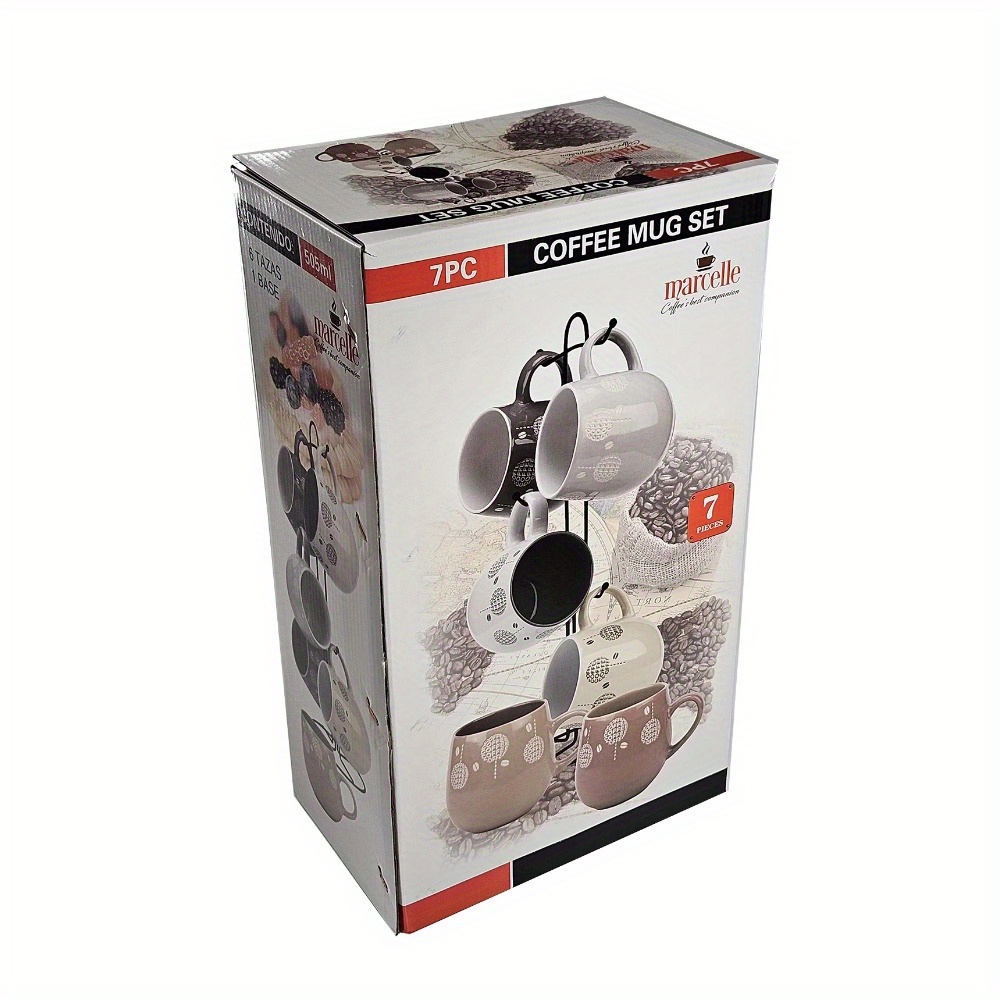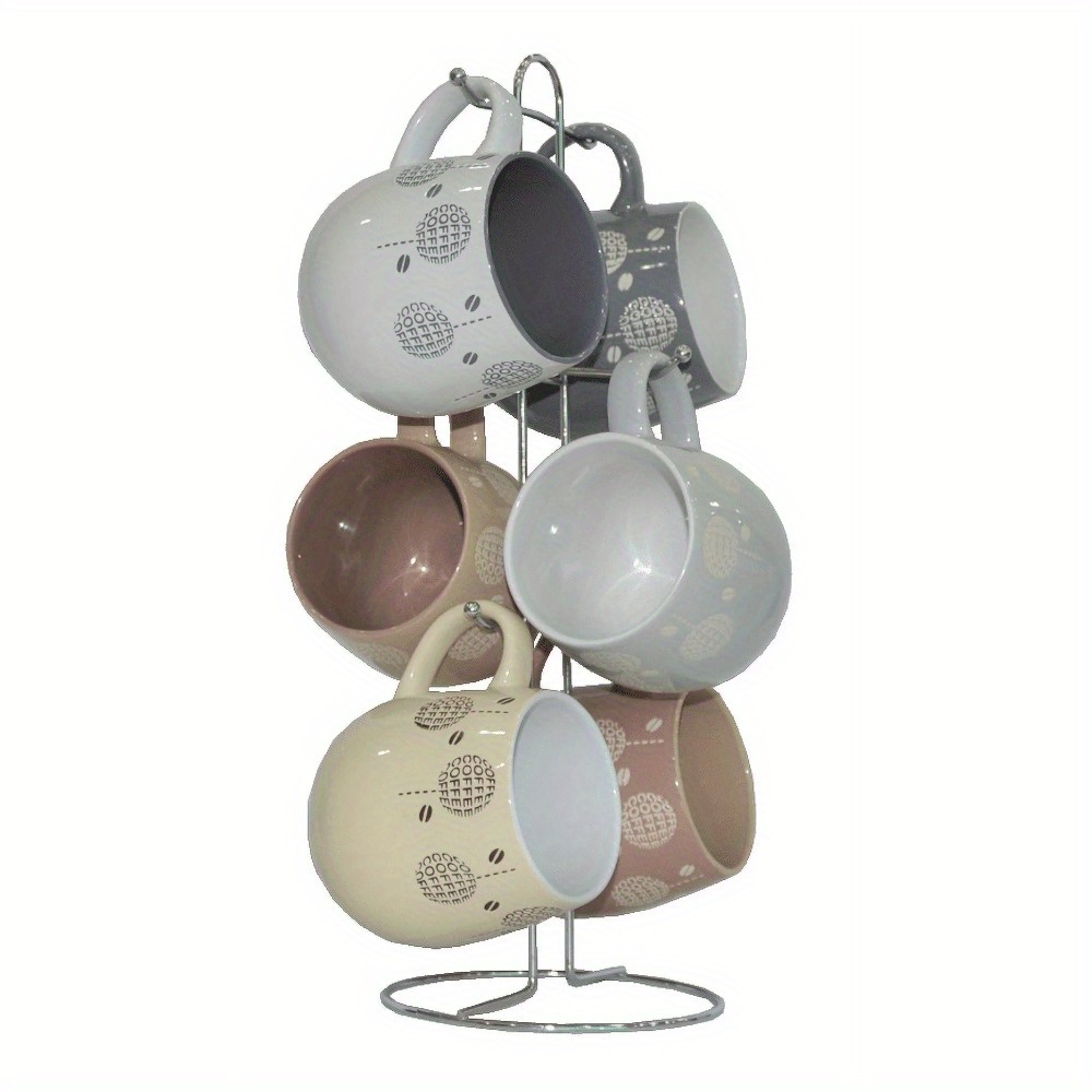 6 Pc.Ceramic Coffee Mug Set with Metal Stand, 17oz