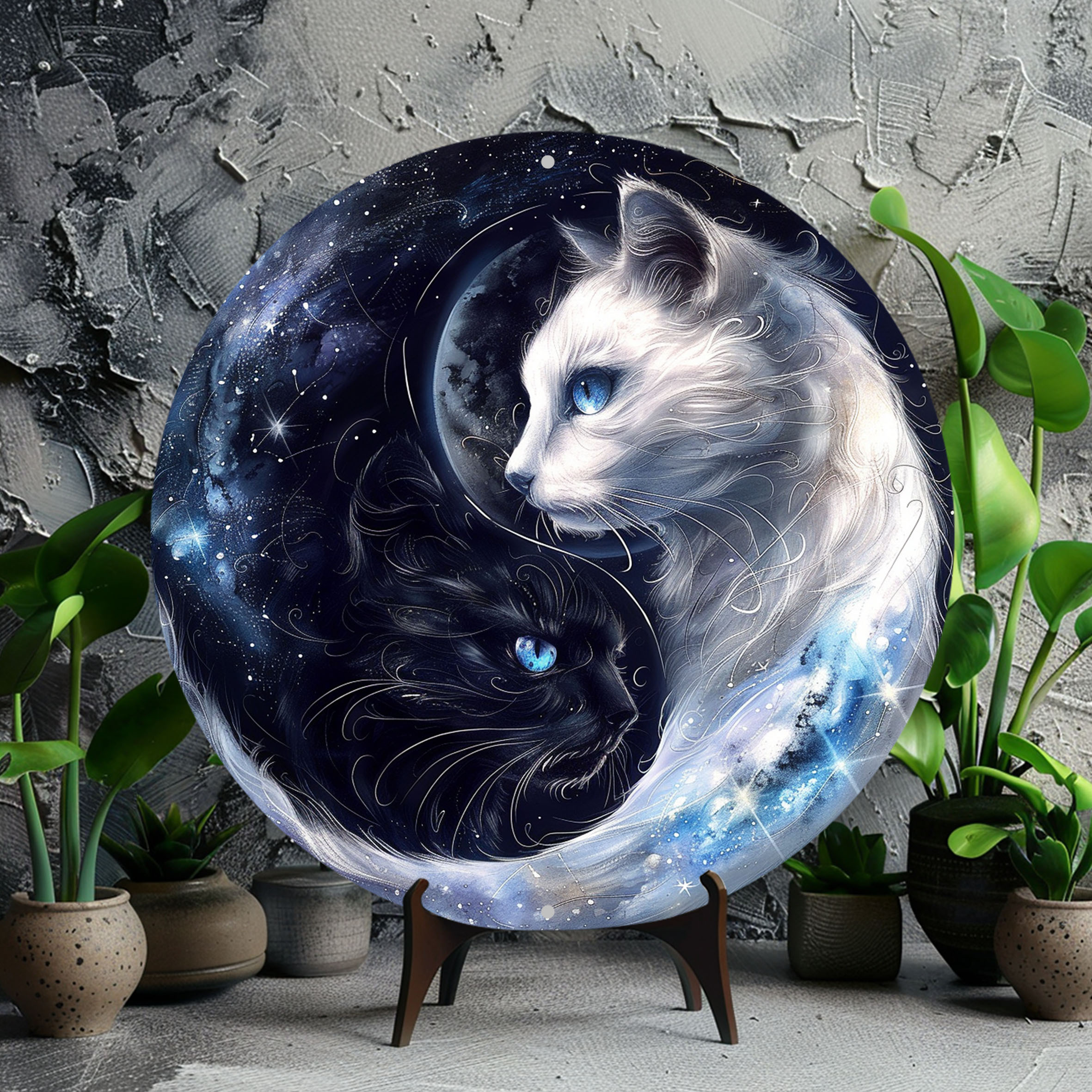 Charming Cat-Themed Aluminum Wall Sign - 8X8 Inch Round Wreath Decor For Home, Office, Kitchen & Coffee Shops - Perfect Gift For Holidays & Special Occasions