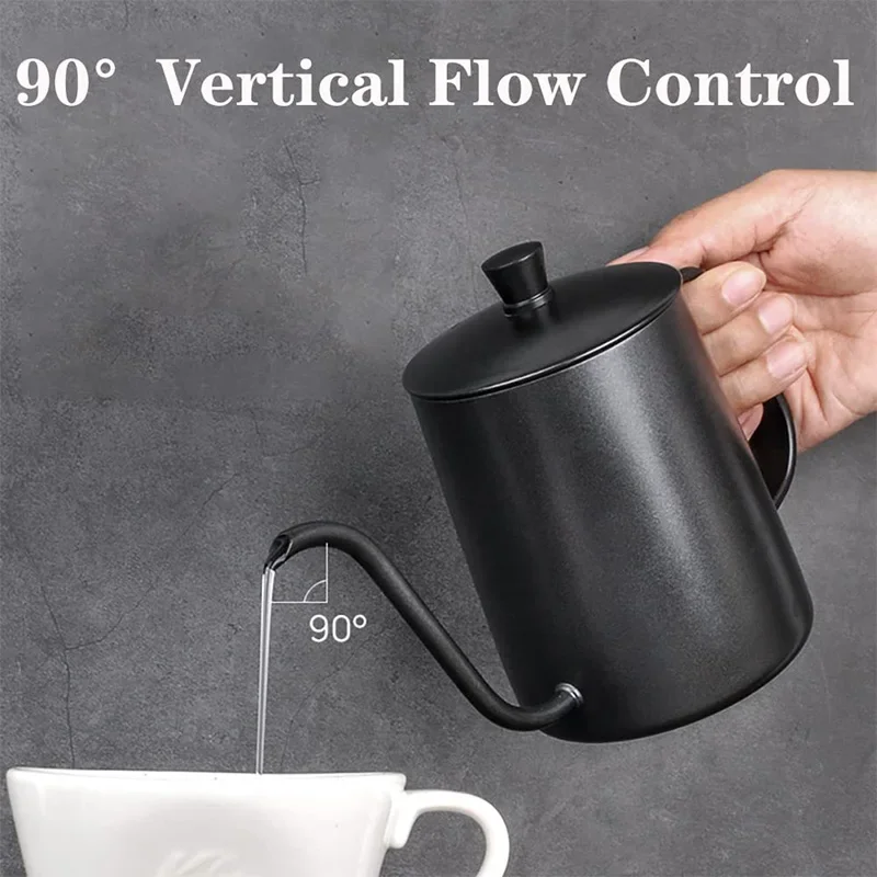 【Long Gooseneck Pot - Precise Control】The gooseneck nozzle and professional fine tip design can stably control the speed, flow size and direction of water flow. It is convenient for users to observe the outflow point of water flow and pour it accurately. The water can be poured vertically at 90°, which is more convenient to pour. 0.4cm water outlet, precise flow control, every drop is just right. The water will flow naturally and slowly over the ground coffee to brew a strong cup of coffee.