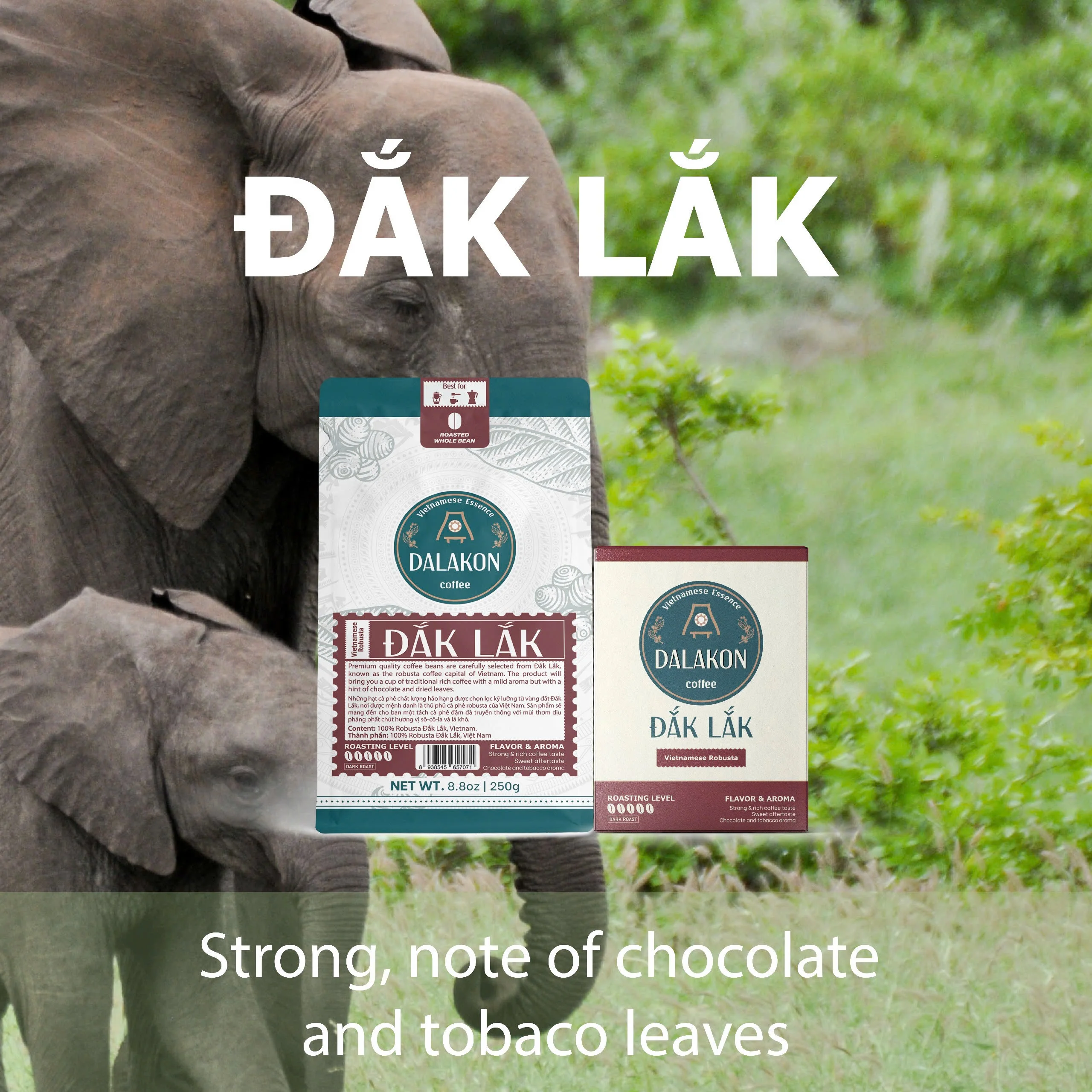 Robusta beans carefully selected and slowly roasted to enhance the bold flavors for a cup of coffee, loaded with emotions and a natural caffeine kick, with hints of chocolate and tobacco flavor DALAKON DAK LAK is perfect for your café with condensed milk |