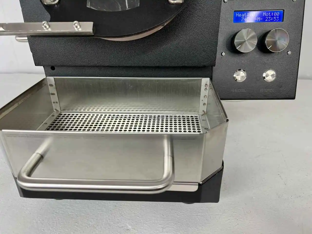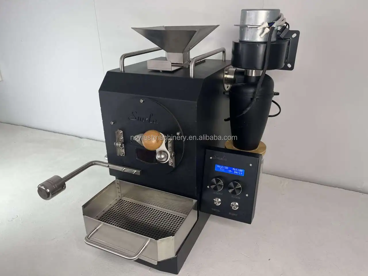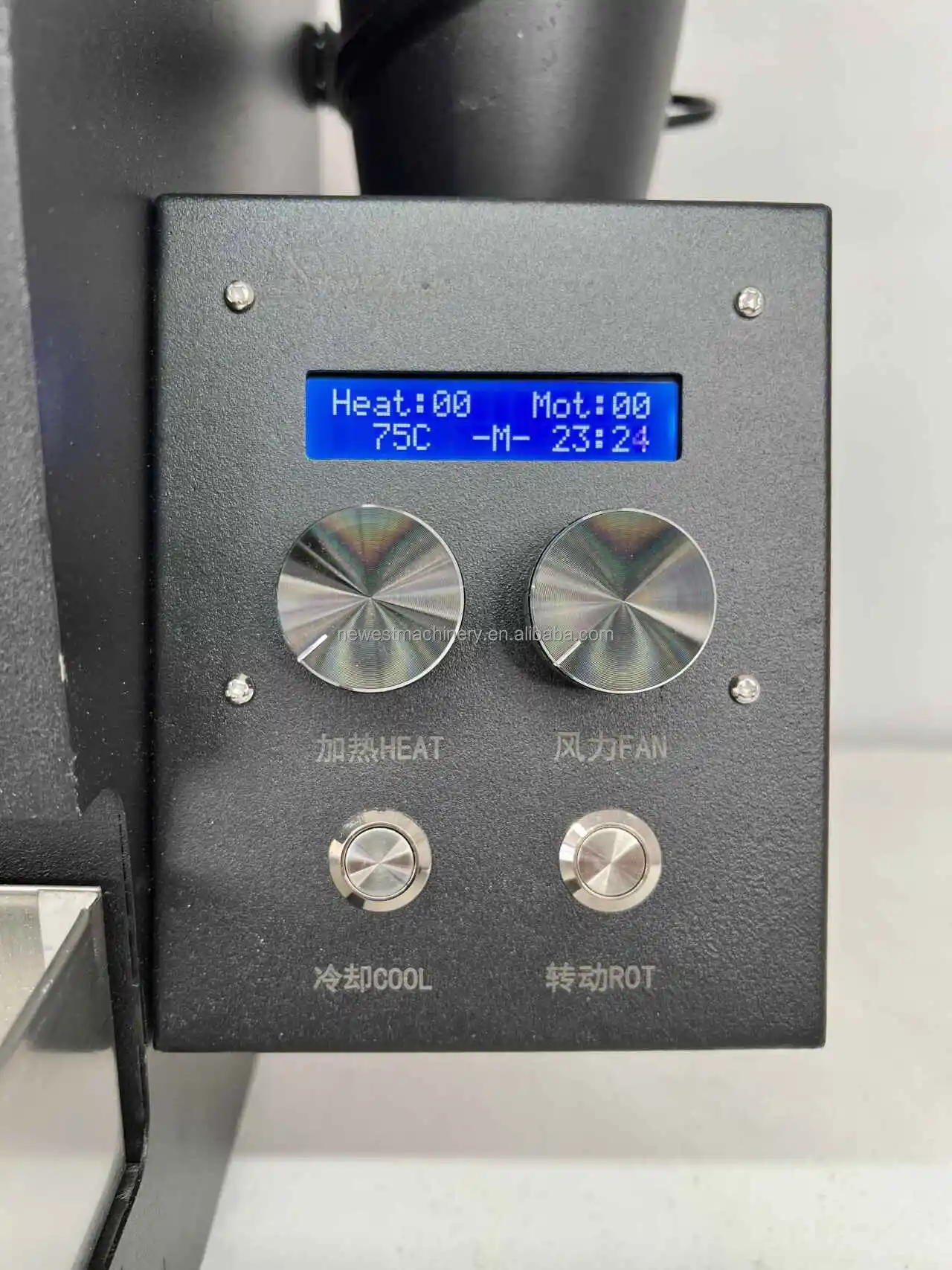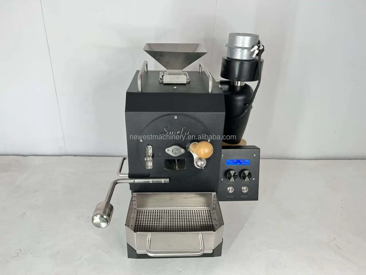 This is an electric drum coffee roaster, the use of infrared carbon fiber heating way to roast coffee beans, electronic control of the throttle, digital gear to adjust the firepower, there is an independent fan cooling.