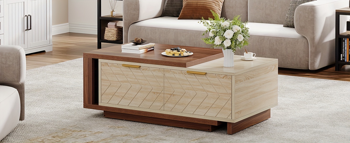 【Spacious Dual Drawers】 Equipped With Two Large Drawers, This Coffee Table Offers Ample Storage For Your Living Room Essentials, Helping Maintain A Clutter-free, Organized Aesthetic.