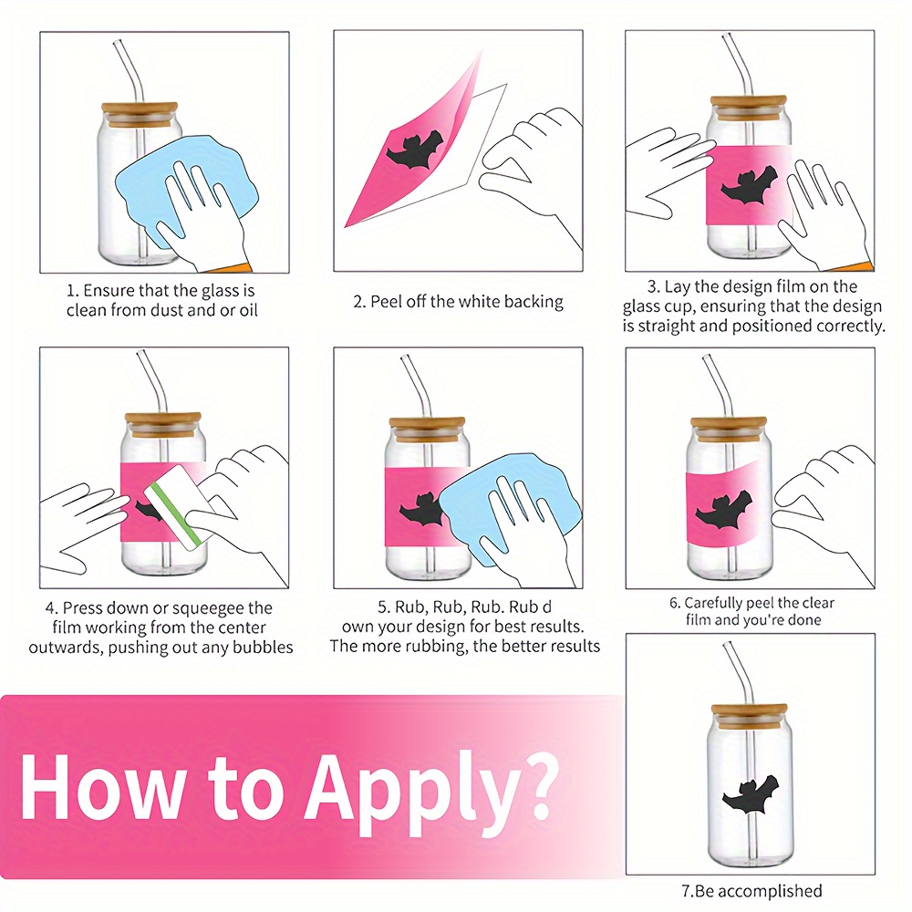 Halloween Witch & Bats PVC Decorative Stickers, 6PCS Waterproof UV DTF Transfer Decals for Glassware - Ideal for 16OZ Tumblers, Coffee Mugs, Bottles, DIY Art Craft Supplies