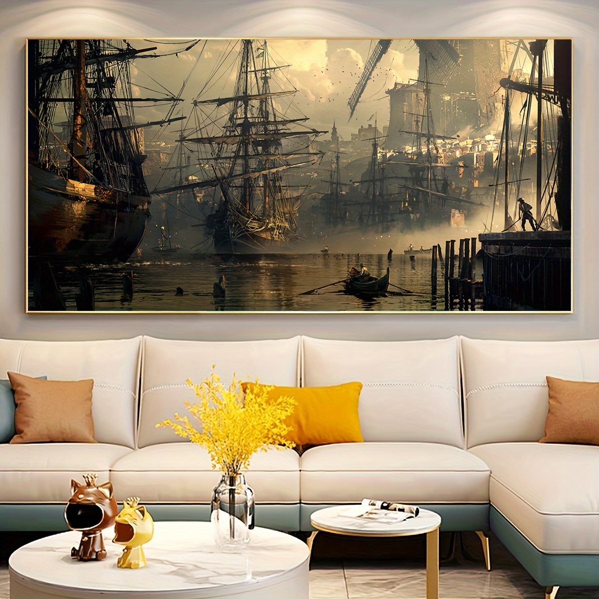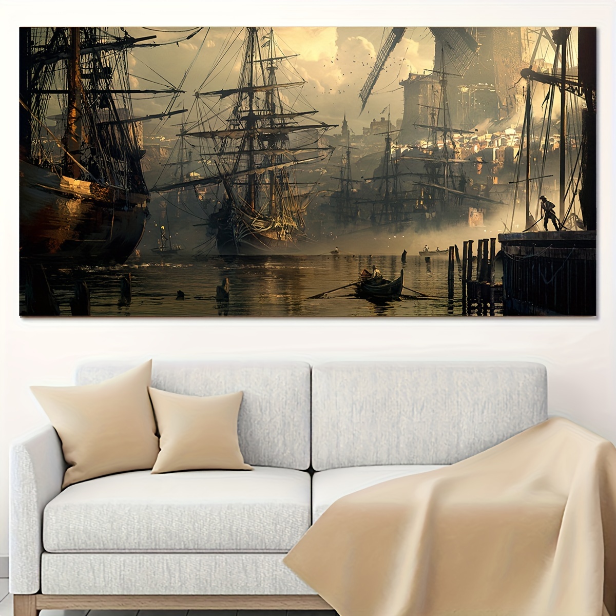Large Canvas Sailboat Oil Painting Print, High-Quality Wall Art for Living Room, Bedroom, Bathroom, Kitchen, Office, and Coffee Shop Decor