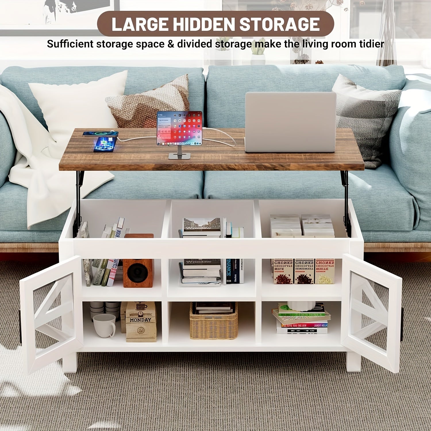 This contemporary coffee table comes with 15W rapid wireless charging, USB & Type-C ports, and 2 AC outlets. It caters to the charging requirements of various devices like smartphones, tablets, laptops, etc., enabling you to relax more comfortably on the couch.
