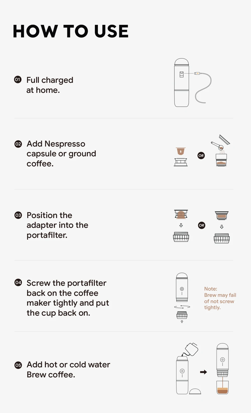 IMPORTANT- WHEN YOU SCREW THE CAPSULE CAP, BE SURE YOU HAVE FULLY TIGHTENED THE CAPSULE CAP AFTER INSERTING COFFEE CAPSULE. BEST