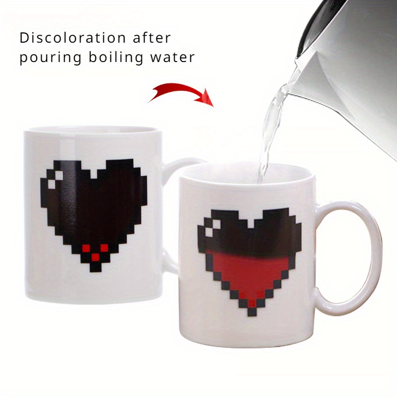 Pixel Heart Heat Sensitive Color Changing Ceramic Coffee Mug, 11.16oz Magic Heat-Reactive Cup - Ideal Valentine's Day Gift