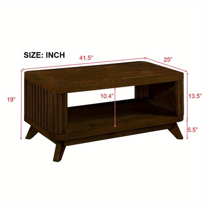 Rectangular Wood Coffee Table for Living Room, 41.5-Inch Coffee Table with Solid Wood Legs, Wood Center Table Tea Table with Open Storage Shelf. Easy Assembly, Walnut