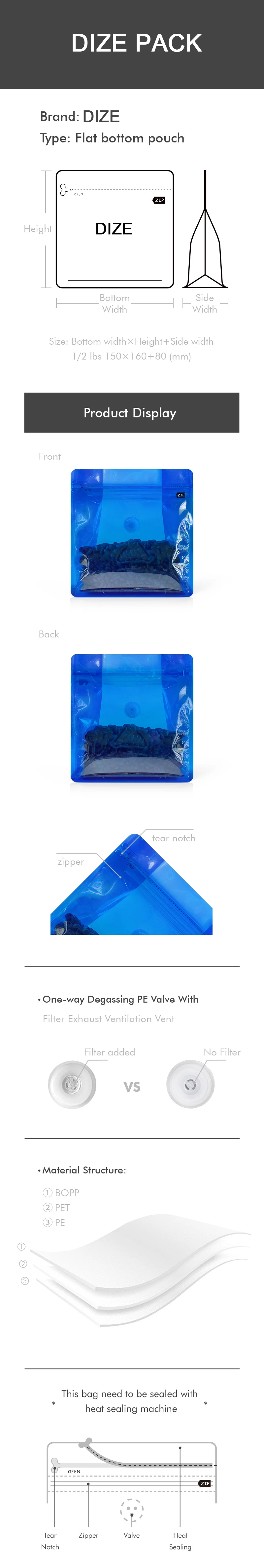 Resealable Lock Packing Wholesale One Way Valve Biodegradable Pouch Packaging Coffee Bags With Degassing Valve and Ziplock