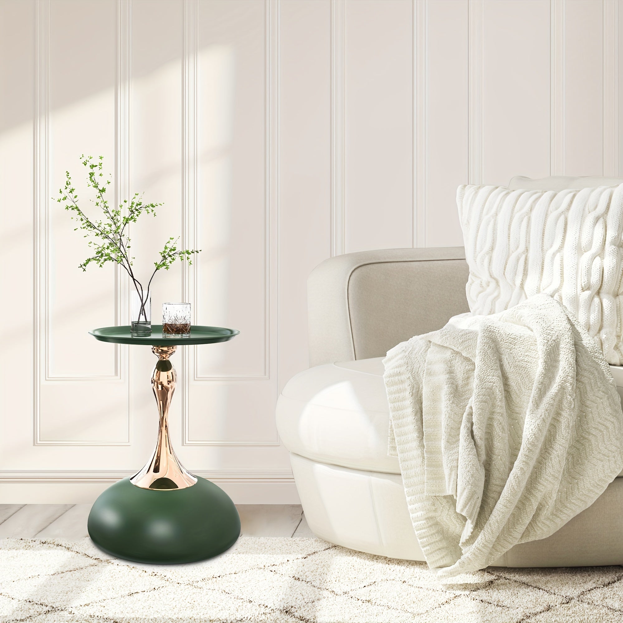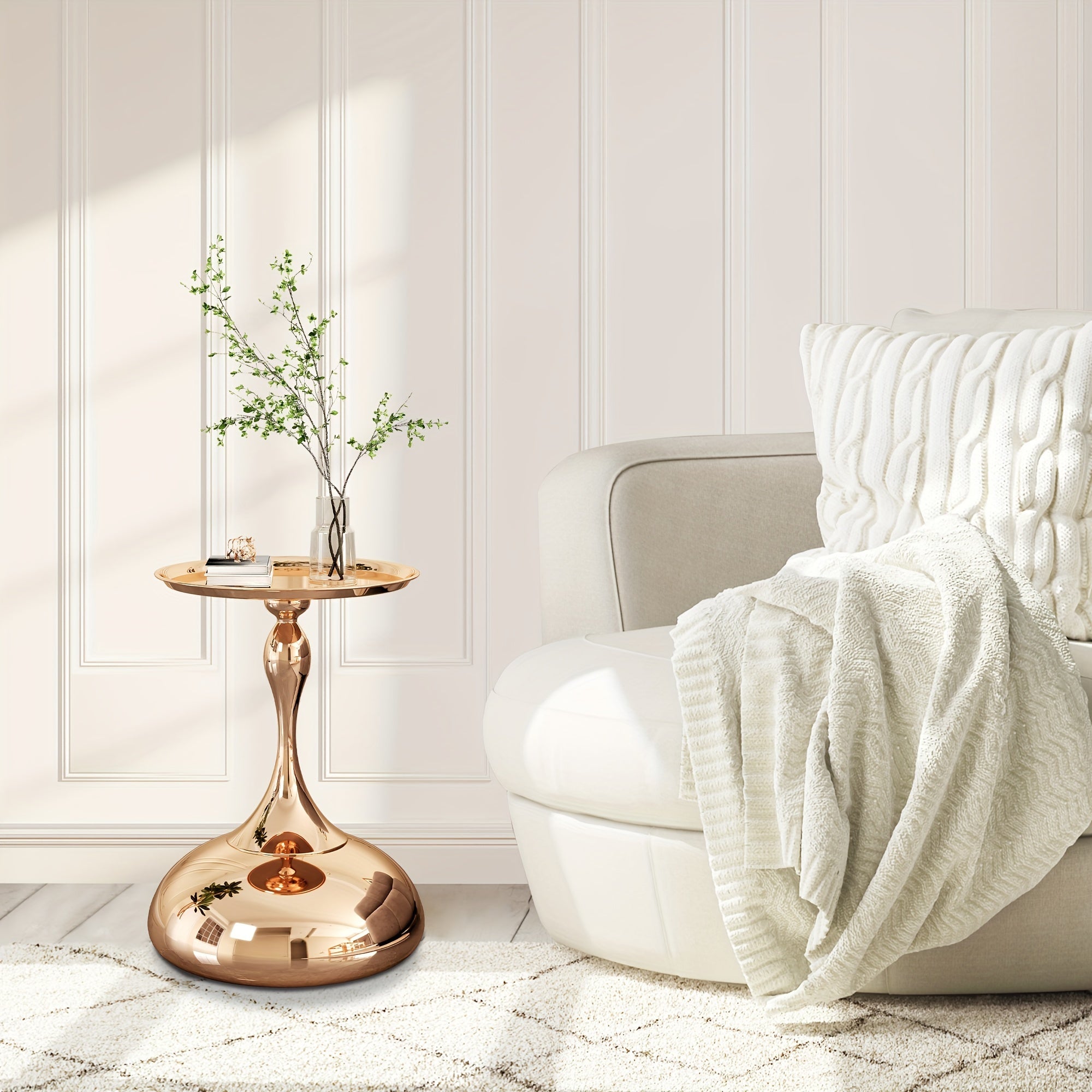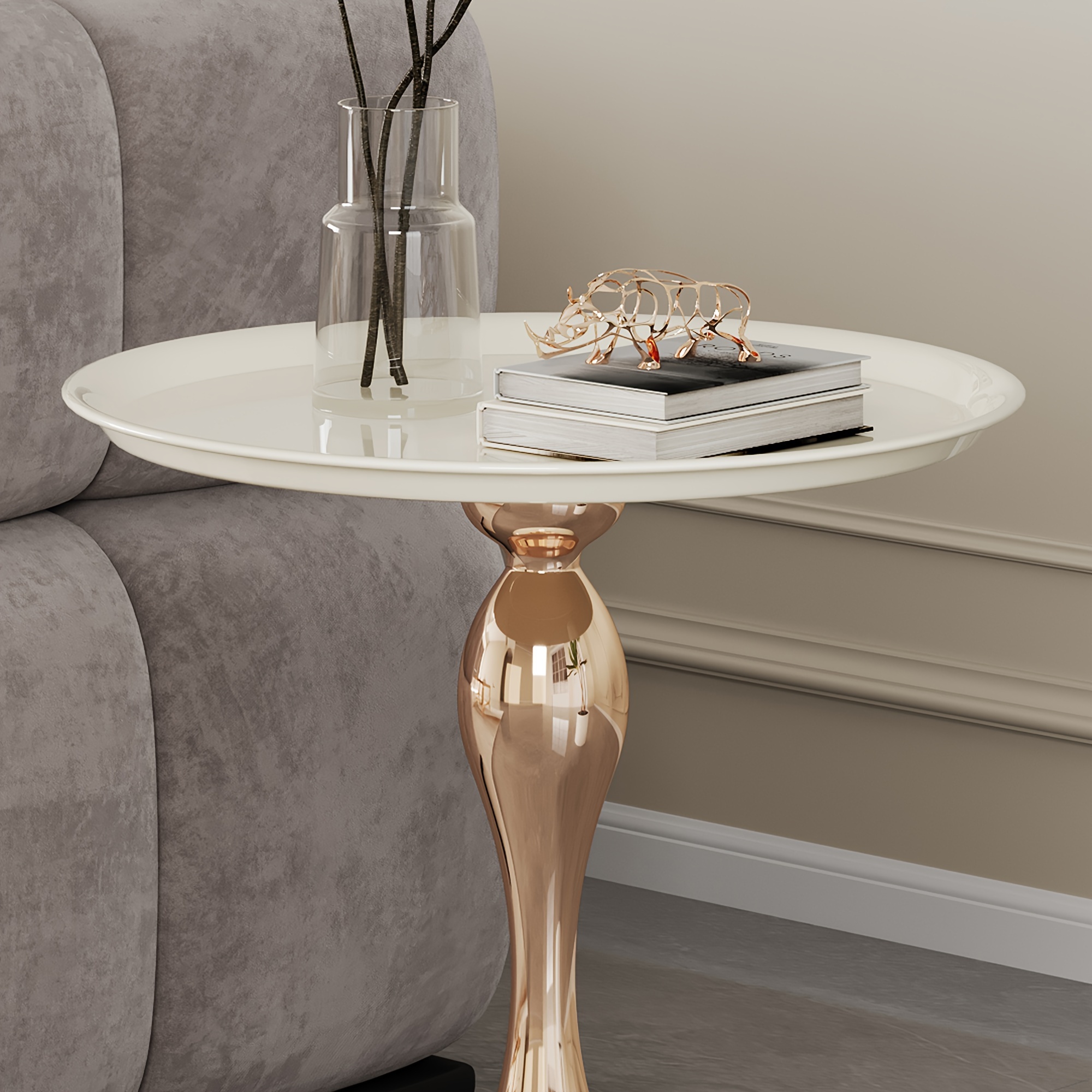 The unique design of the titanium metal small side table breaks tradition, presenting a modern and minimalist visual impact in furniture decoration. Our gold accent table is not only functional but also space-saving, making it ideal for smaller rooms or as a stylish addition to any corner. The pedestal table is elegantly designed like an inverted goblet to enhance the style.