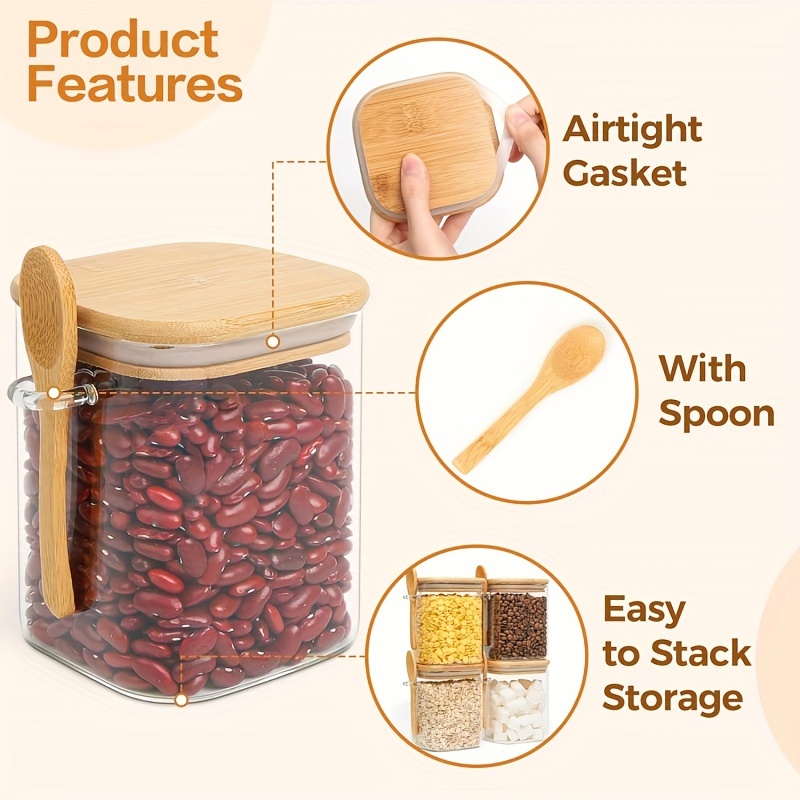 [Safe To Use]-Crafted From Food-grade High Borosilicate Glass, Our Storage Jar Is Not Only Lead-free And Non-toxic But Also Remarkably Durable. The Spoon And Lid Are Made From Natural Bamboo, Adding An Aesthetic Touch To Practicality.