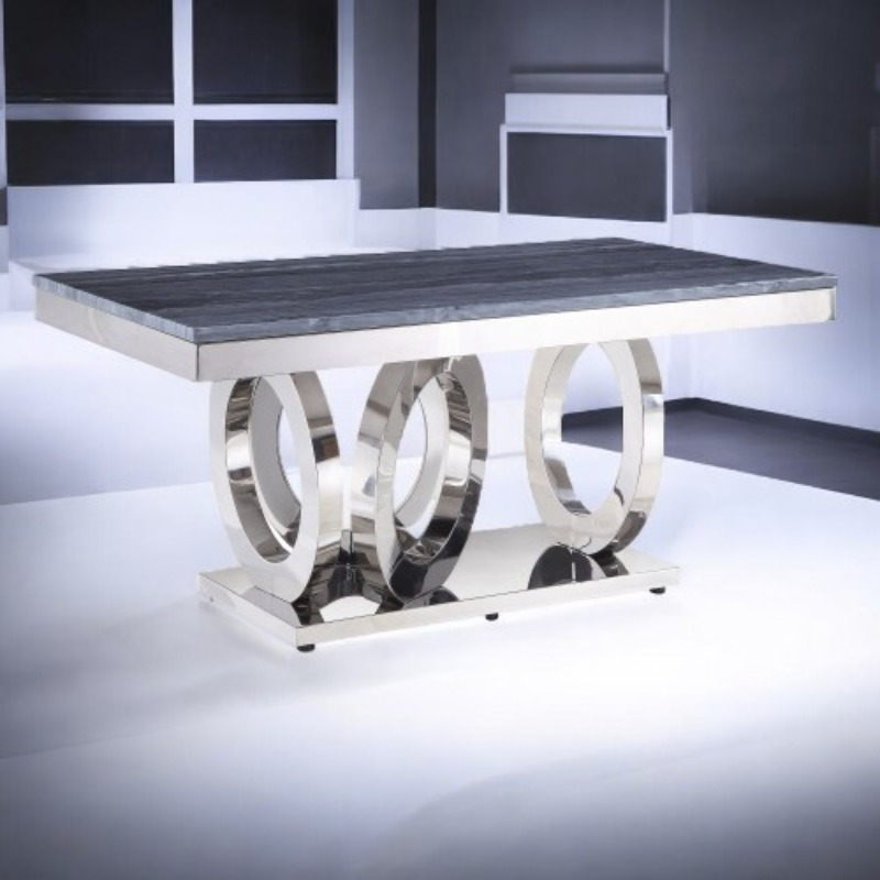 A Stylish Coffee Table With A Modern Glam Design That Blends Contemporary Flair With Luxurious Details, Creating A Refined And Elegant Appearance. The Imitation Marble Surface Radiates Sophistication And Class, Elevating The Decor Of Your Living Area Without The Upkeep Required By Real Marble. The Stainless Steel Base Perfectly Complements The Faux Marble Top, Offering A Polished And Sturdy Support For The Table. Featuring An 18mm Thick Tabletop, This Piece Guarantees A High-end Feel And Increased Resilience For Daily Use.