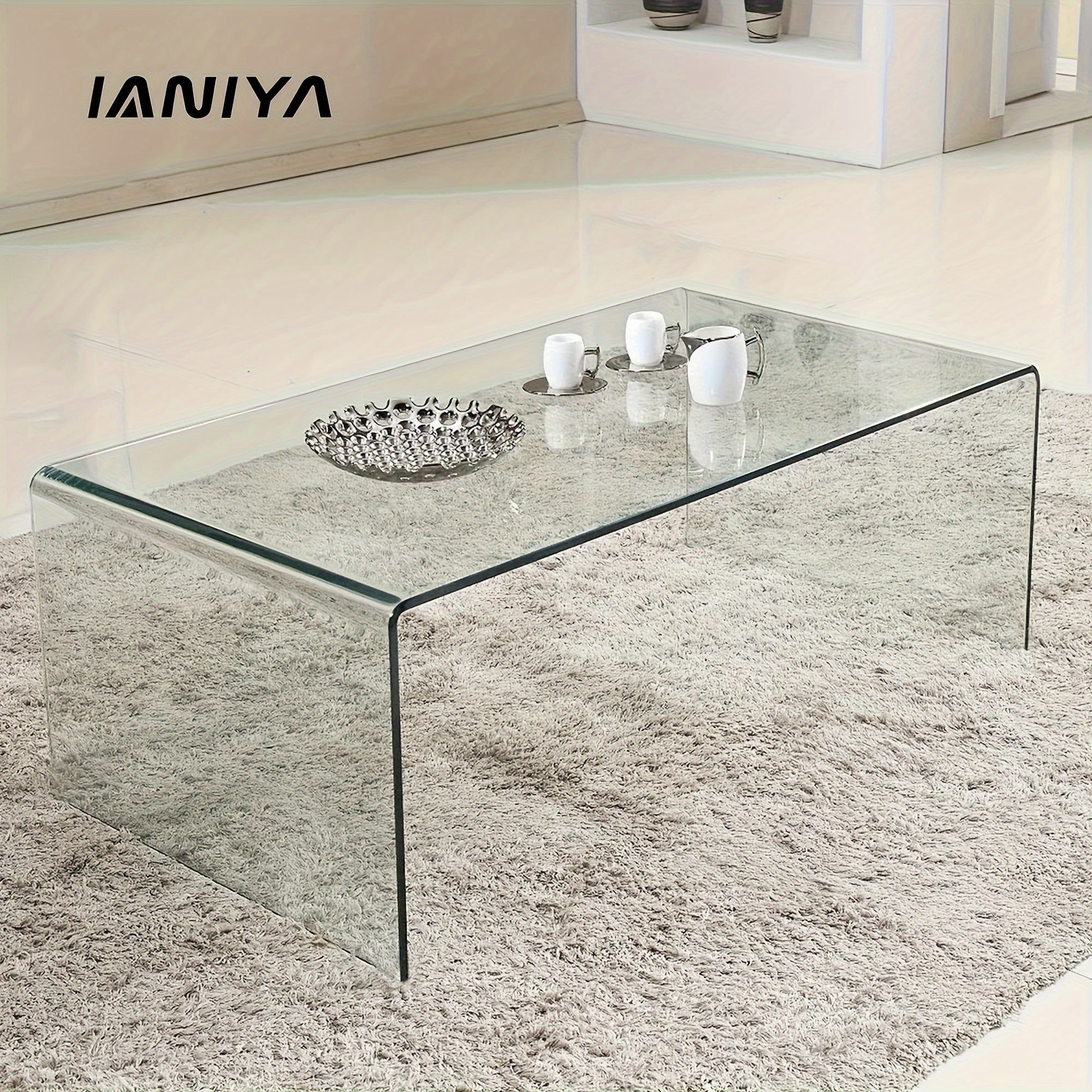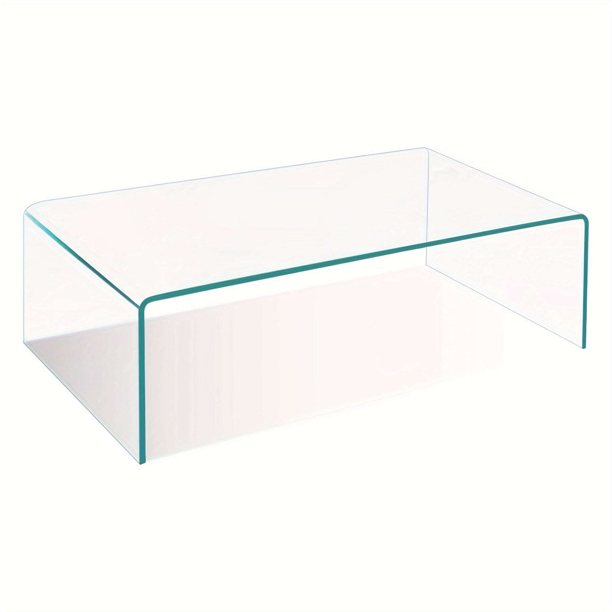 Tempered Glass Coffee, Clear Coffee Table, Waterfall Rectangle Coffee Table for Living Room, Cocktail Tea Table with Rounded Edges