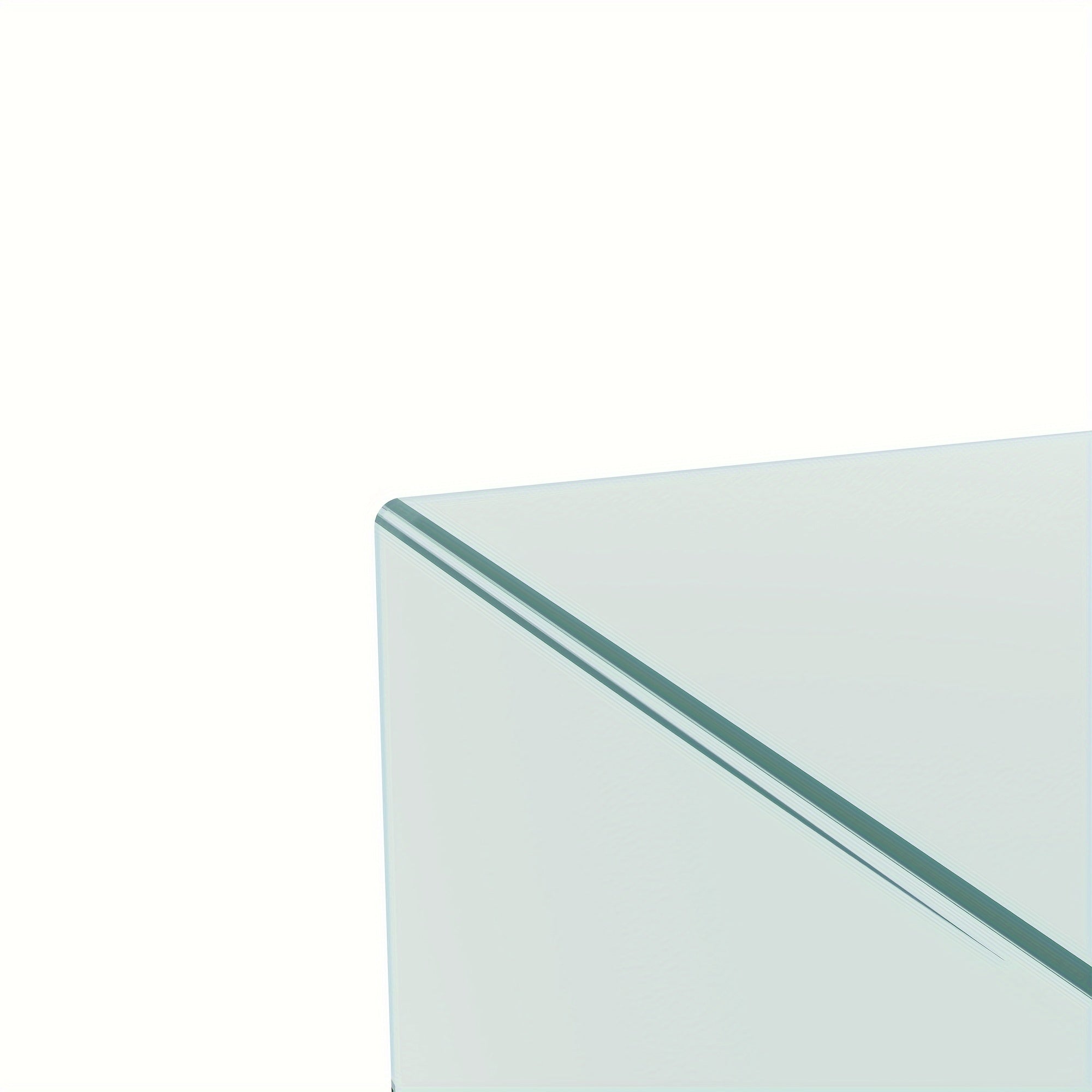 Rectangular coffee table made of clear tempered glass, with a waterfall design, ideal for the living room, serving as a cocktail or tea table with smooth rounded edges.