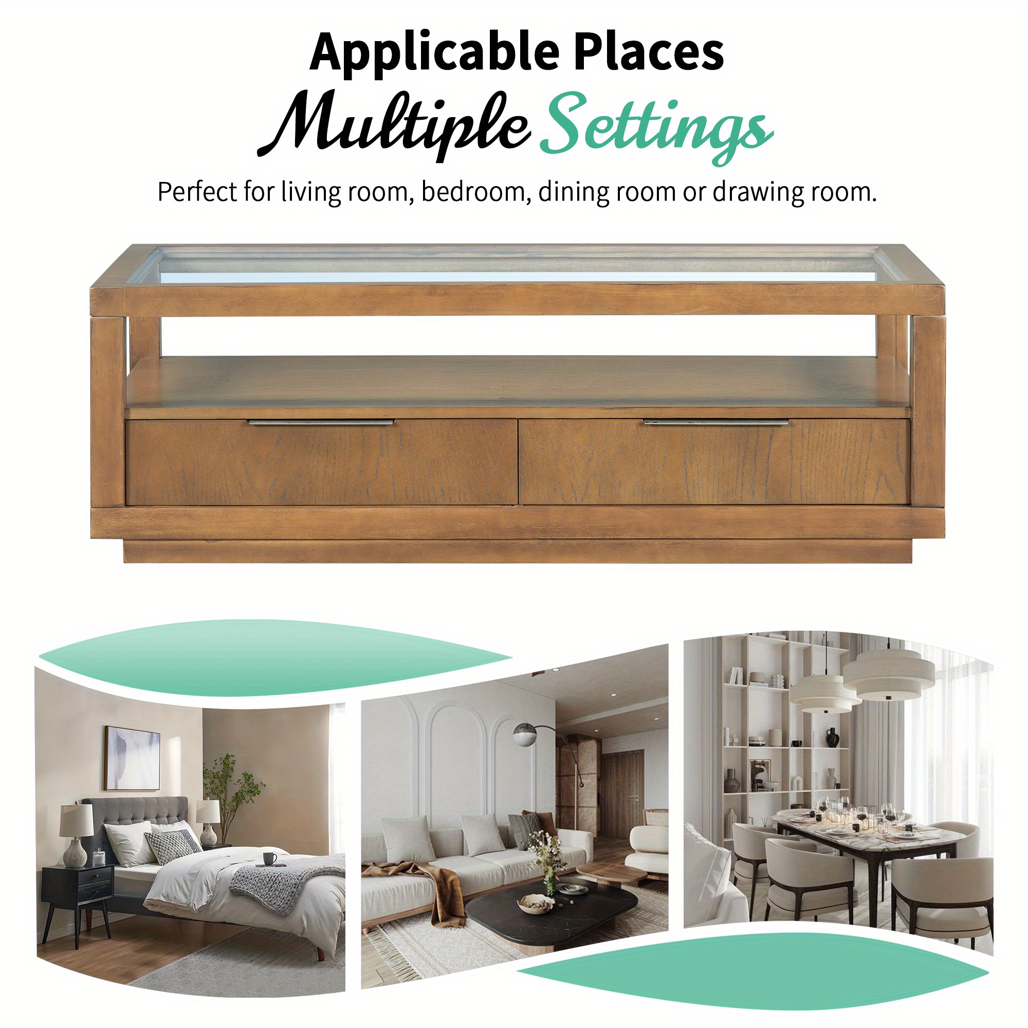 A Perfect Blend Of Contemporary Design And Practical Functionality, Our Sleek Coffee Table Is An Epitome Of Modern Furniture Craftsmanship. It Designed With Transparent Tempered Glass Top, Open Shelf, Storage Drawers, And Natural Grain Finish To Complement A Variety Of Interior Styles, Providing Both Aesthetic Appeal And Practical Storage Solutions. Whether You're Entertaining Guests Or Enjoying A Quiet Evening At Home, This Coffee Table Will Serve As A Central Piece That Enhances The Beauty And Organization Of Your Living Space.