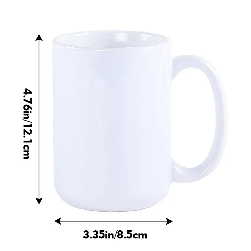 USA Stock 15oz Ceramic Coffee Cup Sublimation Heat Transfer Blank with Customizable Logo Classic Design Safe for Back to School