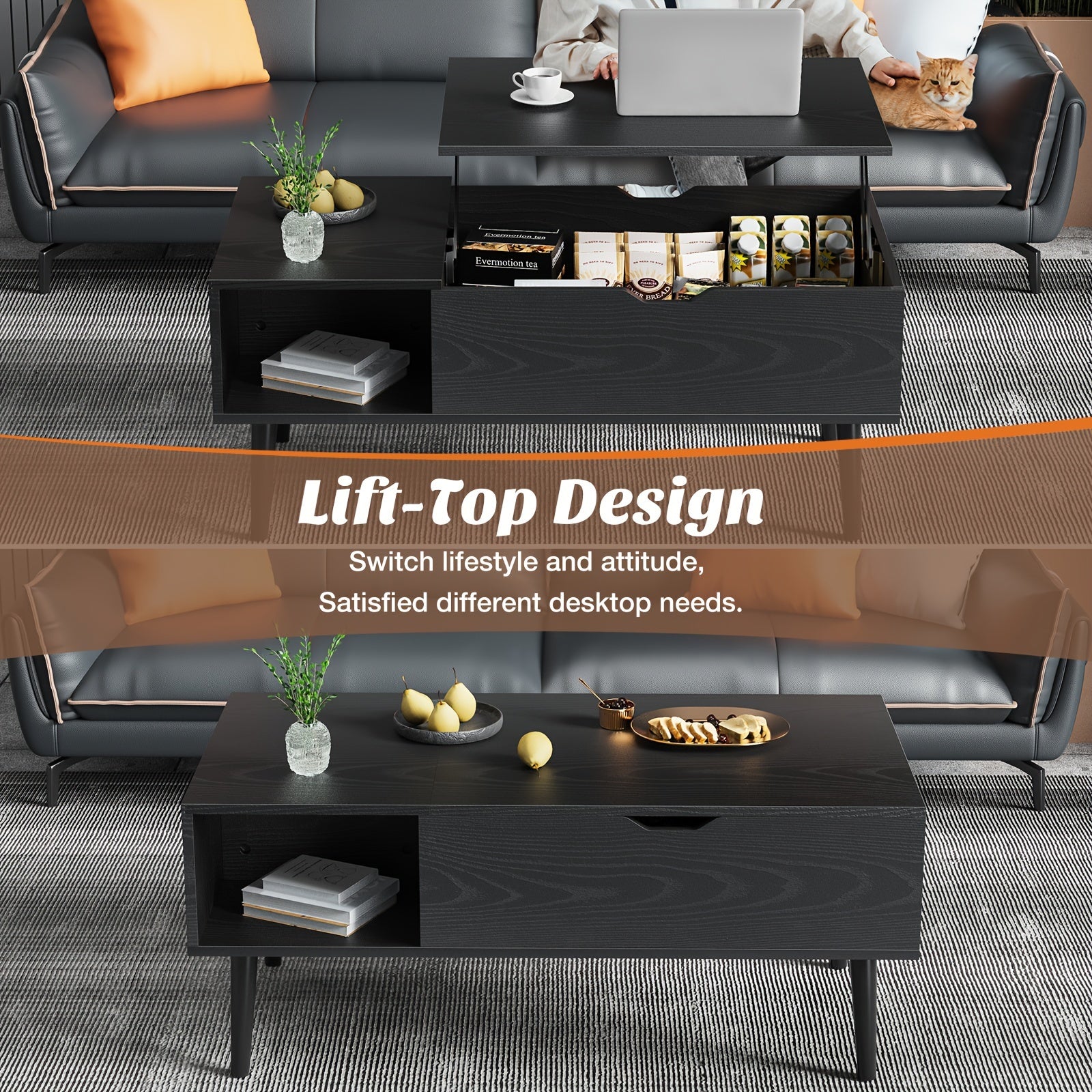 · Lift-top drawer for easy access to stored items