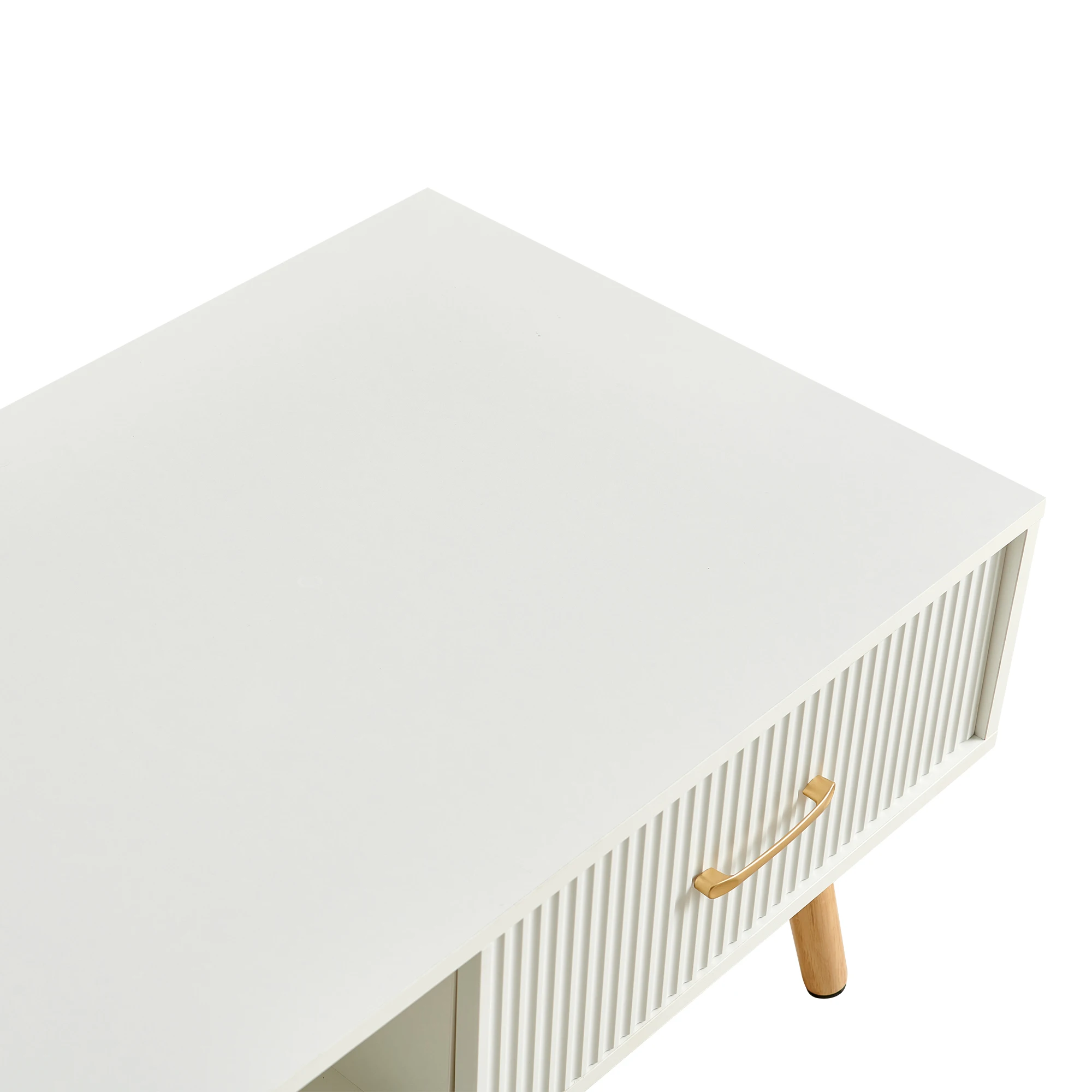 Wood Coffee Table with Sliding Doors & Open Storage Shelf Mid-Century Center Table for Small Space White